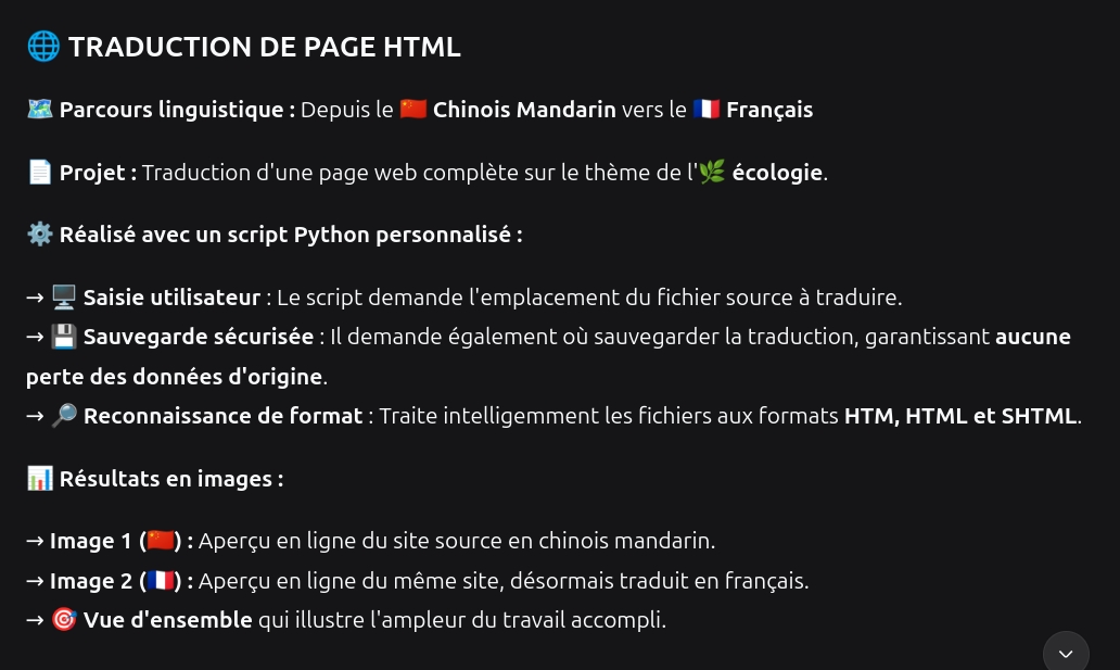 Traduction de documents techniques, littéraires et marketing avec une précision contextuelle inégalée grâce à nos modèles linguistiques spécialisés. Traductions précises et naturelles entre le français, l'anglais et le chinois.